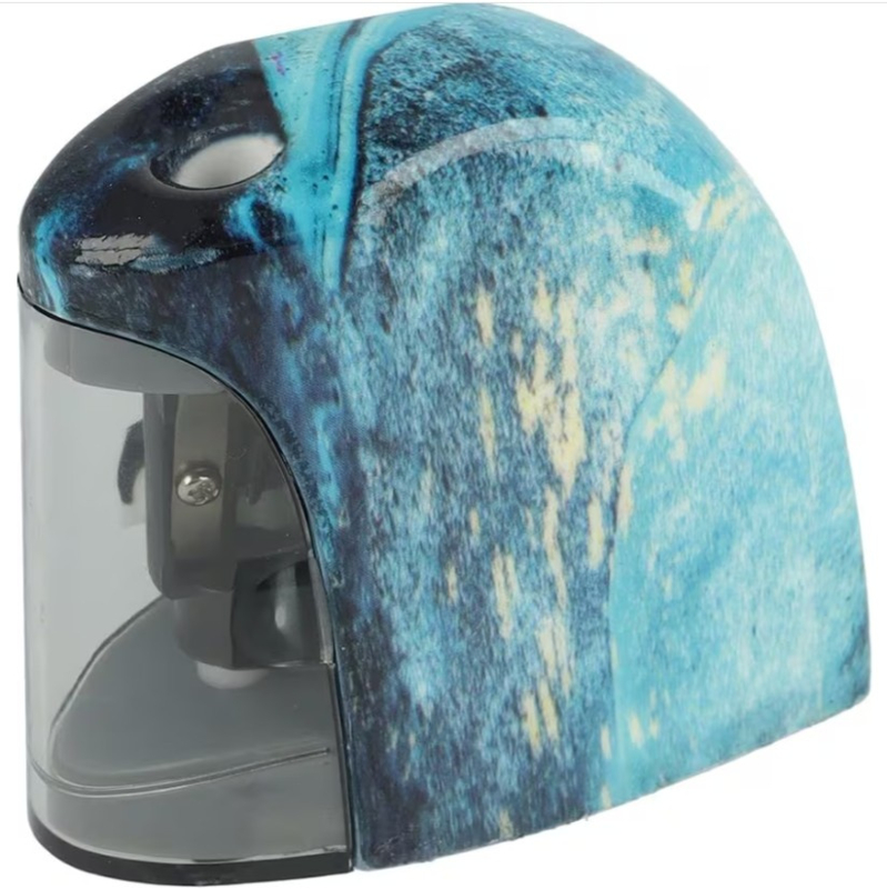 Deze prachtige Westcott elektrische puntenslijper is uniek door zijn gietkunst design patroon. Deze slijper wordt door een batterij aangedreven en start het slijpproces volledig geautomatiseerd. Het snijsysteem zorgt voor een langdurige scherpte. Deze puntenslijper hoort bij een complete serie van deze "trend" producten. Deze slijper is geschikt voor standaard potloden en kleurpotloden. Batterijen niet inbegrepen, 2xAA-batterijen zijn nodig. Kleur: Blauw
